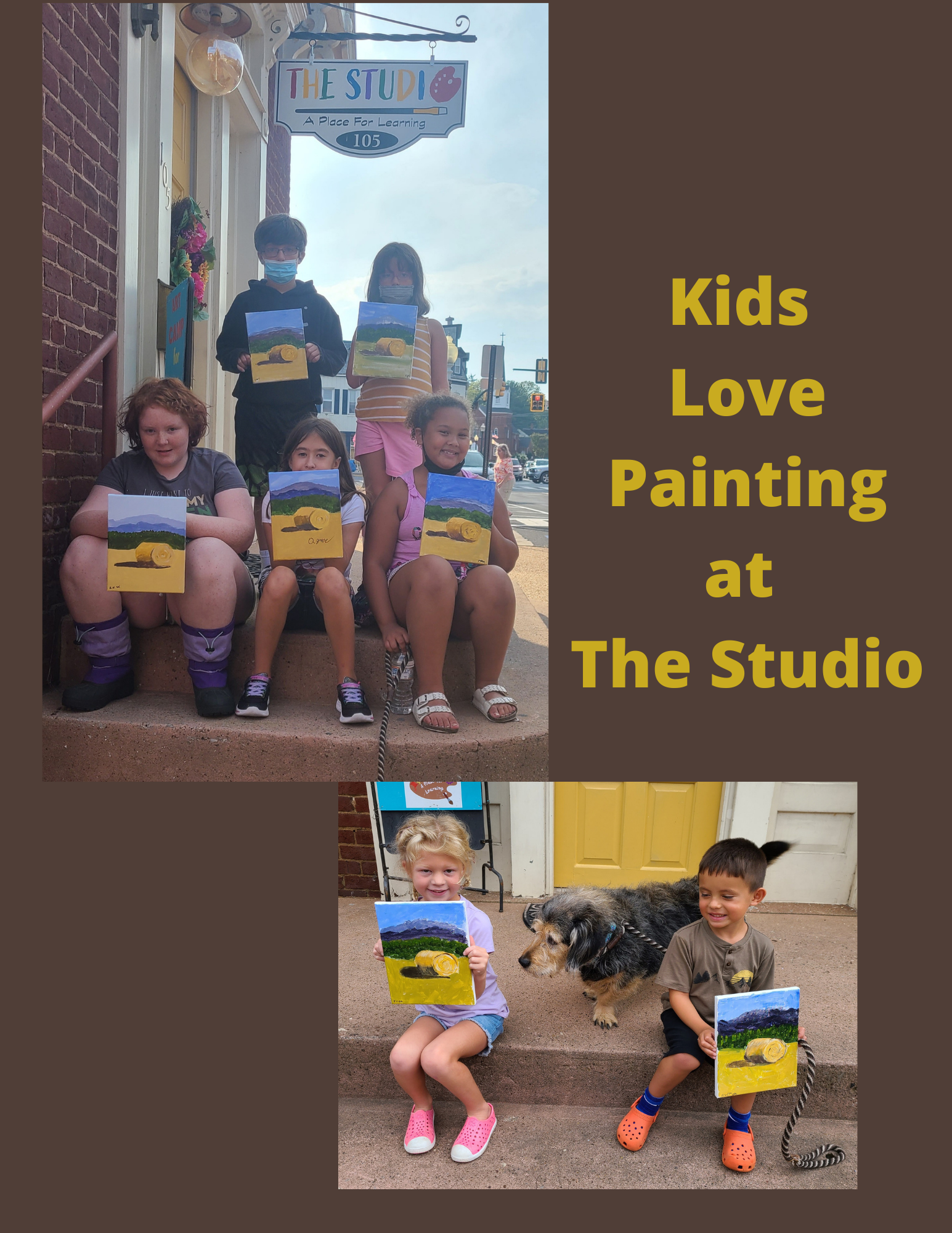 Kids LOVE painting at The Studio. They get so excited as they see their paintings come to life! And while they are having fun they are learning about color mixing, how to use brushes, and about different types of art. This week our Wednesday and Thursday classes created these gorgeous haybale landscapes. What a GREAT job they did! If you have a young painter ages 6-12 who would like to join in our Wednesday, 4:15-5:15 class or our Thursday, 11-Noon class, contact kwalker@kellywalkerstudios.com to sign them up. Come paint and join in the fun!