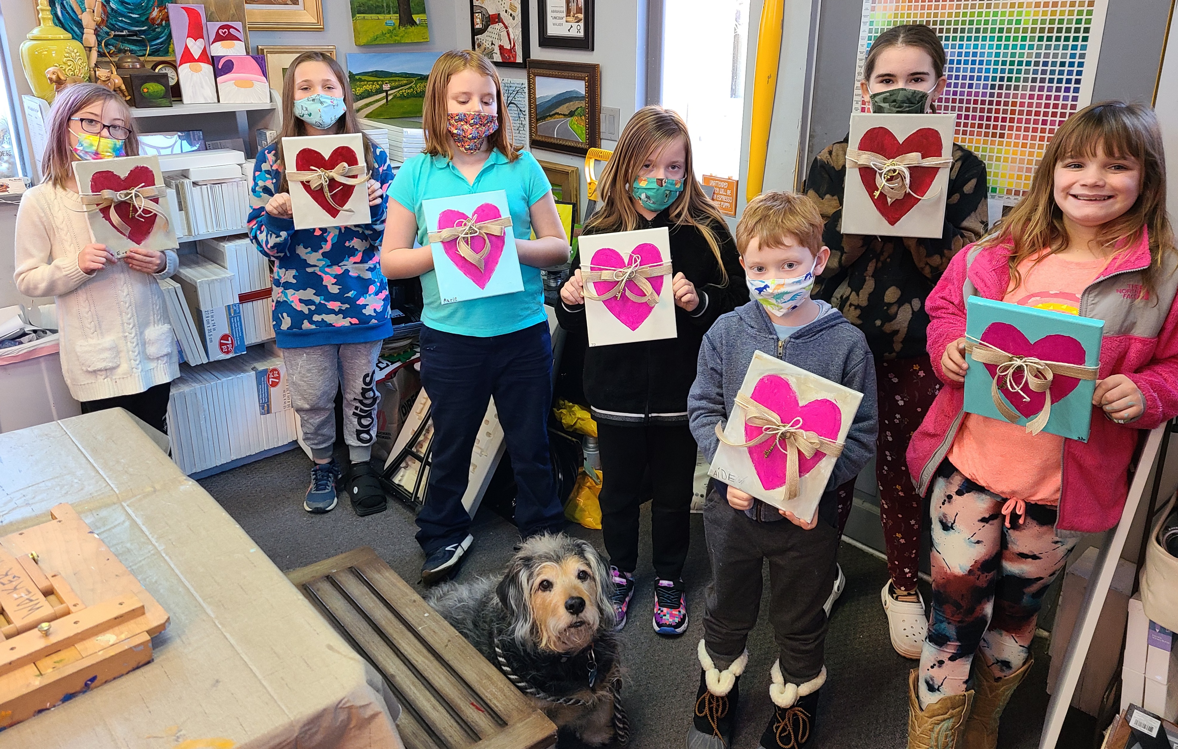 The kids painted beautiful abstract style hearts as we ready for Valentine’s Day. Lovely! If you have a young artist interested in painting with us contact kwalker@thestudioforlearning.com to sign them up! We meet each Wednesday at 4:15.