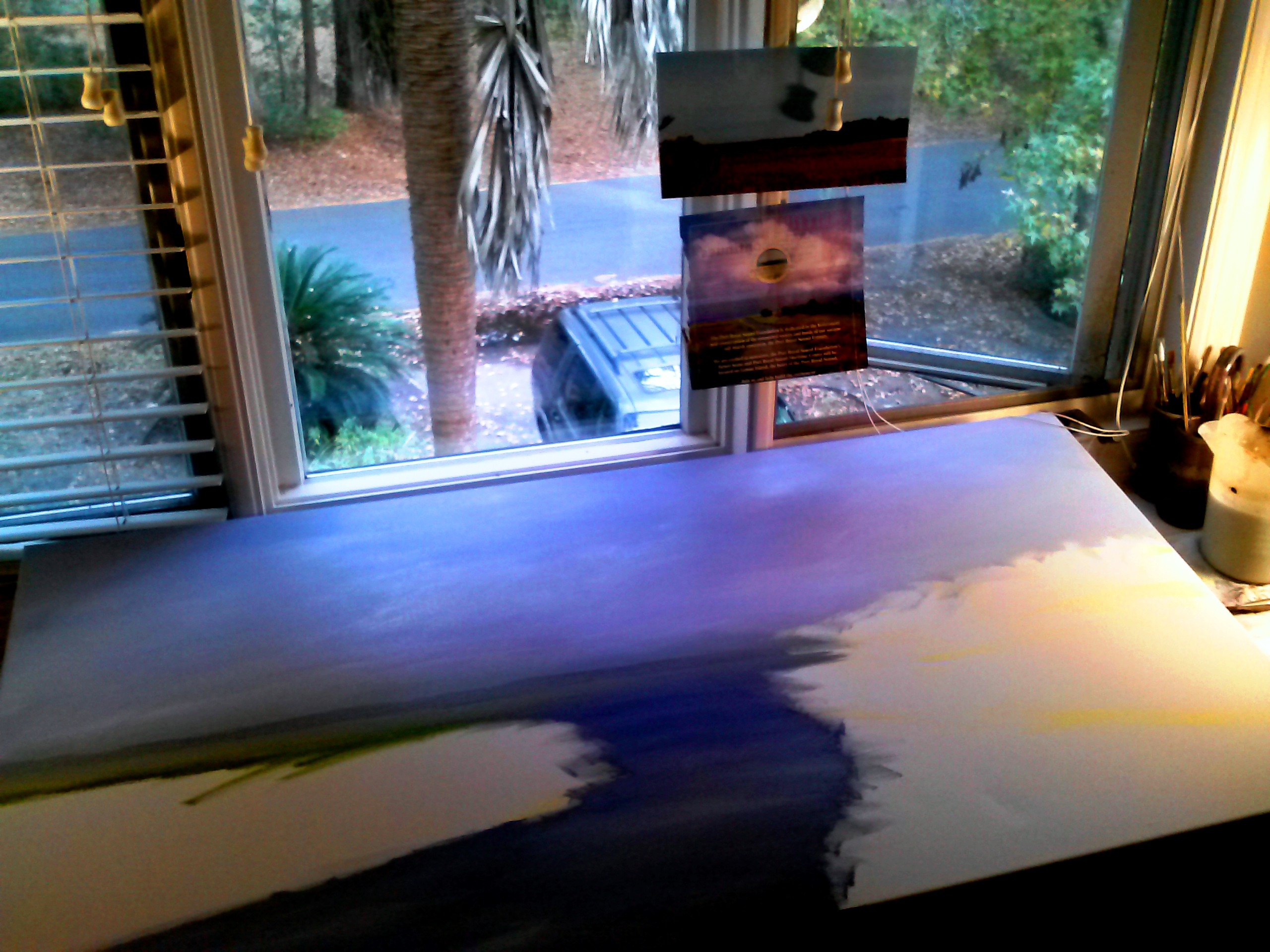 I am taking a short break away but it’s hard to go without painting when you are accustomed to painting every day so I am working on a large painting of the local marsh view. It’s nice to change up the subject matter from the mountains, vineyards, and baseball parks I have been painting the last several months. I hope to finish it today so I can share the finished painting tomorrow.