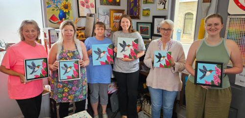 A great group painted these cute little hummingbirds on Sunday. They all look fabulous! Check out the upcoming paint parties at The Studio by clicking here: https://thestudio-104116.square.site/