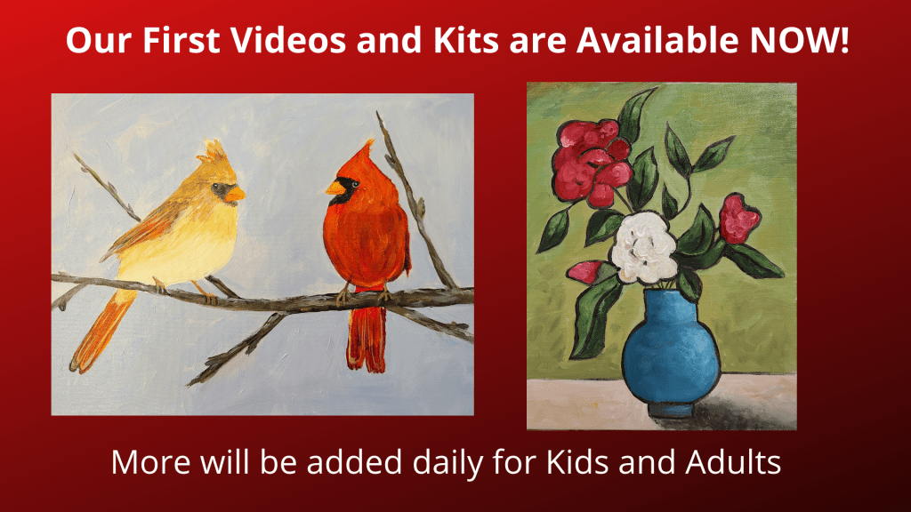 The written directions will include a list of all the supplies you will need to create the painting along with step by step directions with color mixing instructions. We have two videos and instruction sets ready today and we are adding more each day. We will have some kits soon that will be available with just the written instructions….and some that will be geared toward kids….although any of these will be fine for all ages.