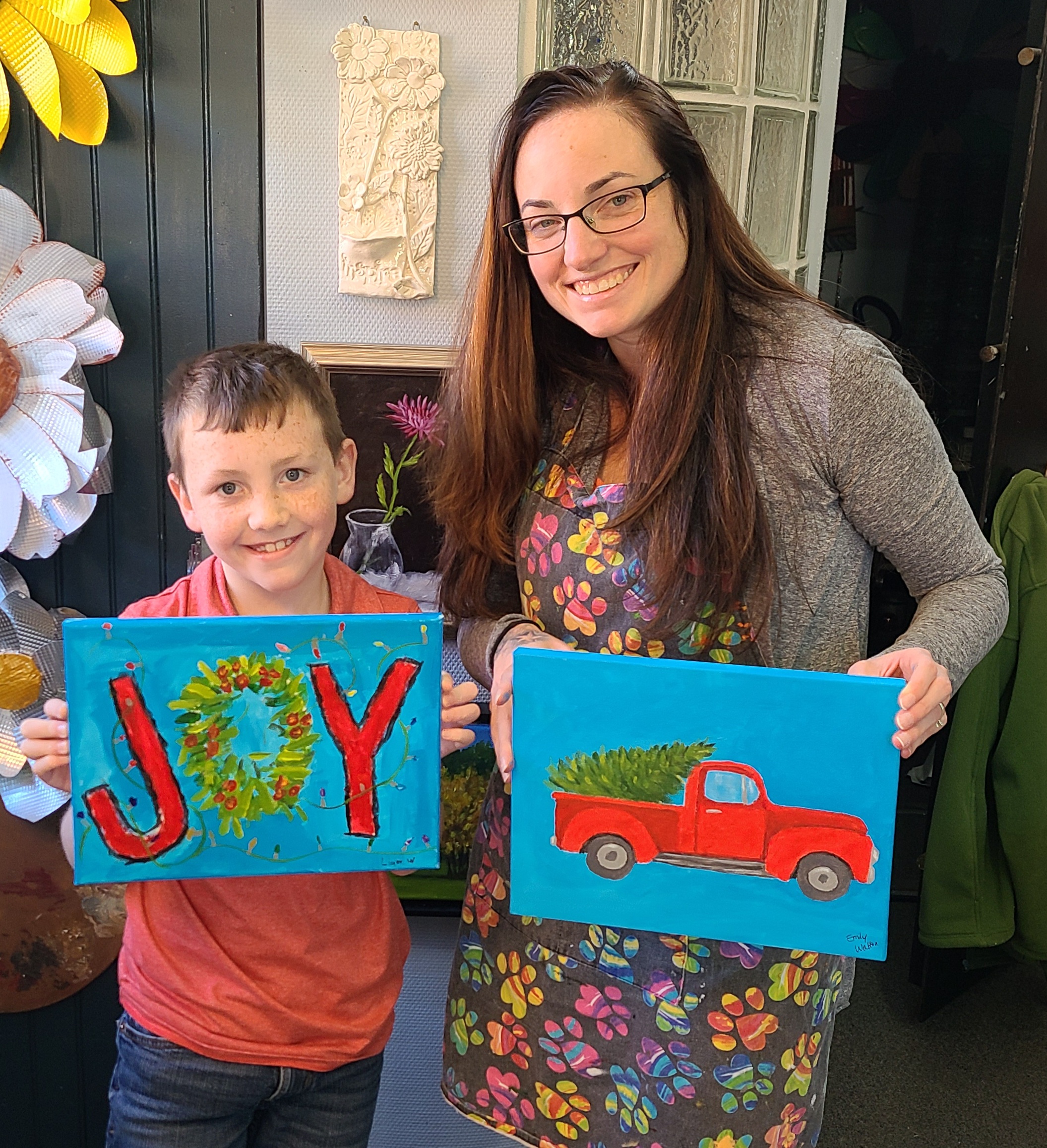 We painted this neat “Ornaments on a Branch” last night at the Paint Party at The Studio. Look at what a great job everyone did! We had a lot of “family” action too….a mother with her three grown kids; an aunt with nephew, and a mother-daughter. It’s a fun way to spend family time. We have another opportunity to paint this one this Thursday at 6 pm.