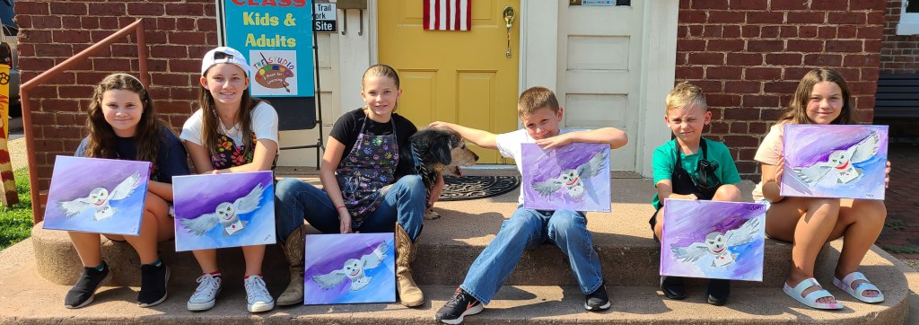 Yesterday we had a fun little group of girls painting Hedwig and talking Harry Potter. Didn’t they do a GREAT job??!! We have one week of Art Camp left for ages 8-13 coming up August 5-8. Click here for more info and to register.