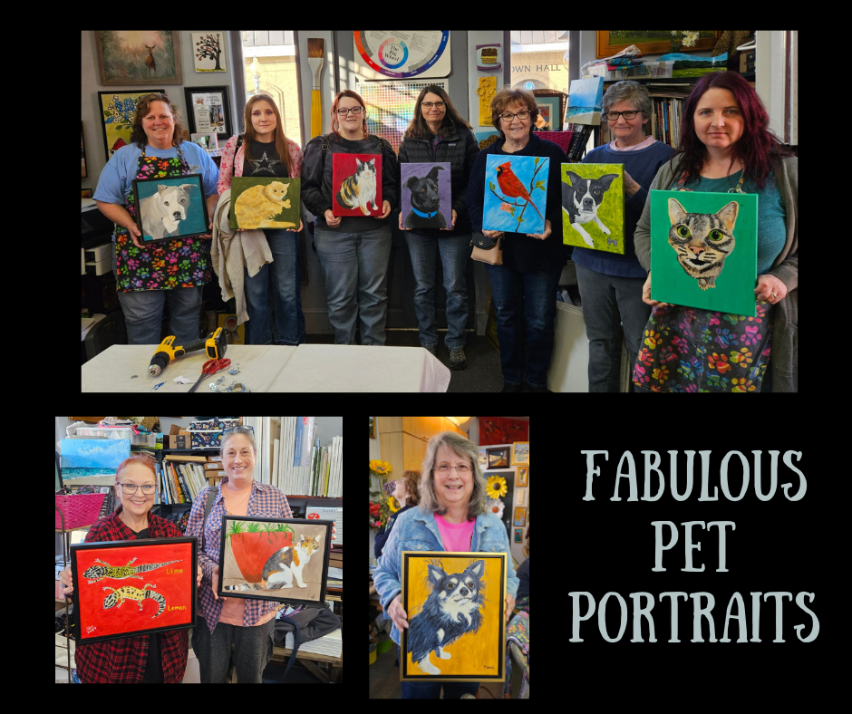 This terrific group of painters did a fine job painting their pets today at The Studio. Very well done!!! Our next Pet Portrait session will be in January. Watch for the date coming soon. And remember that Gift Certificates are available. They make terrific gifts for the holidays. Contact kwalker@kellywalkerstudios.com to get one (or more) today.