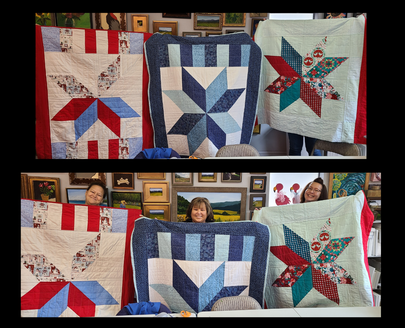 Shannon, Becky and Paula came back to The Studio yesterday, on their Holiday off, to complete their Big Star Quilts. And look how terrific they turned out. And Paula, being the overachiever that she is, decided to make two borders around hers so that is why she has a little more to go but I know she will knock that out at home without any problem. Girls, you all did a great job. I’m so proud of you and you should be super proud too!