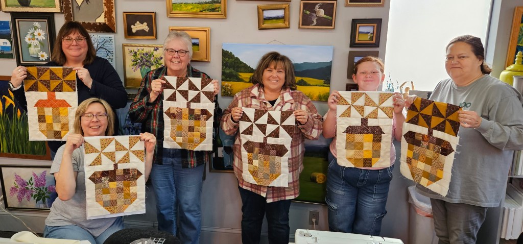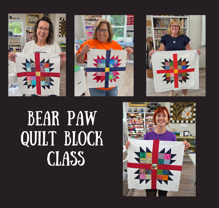 We had a great time last Saturday learning to make a Scrappy Bear Paw Quilt Block. Some quilters made a large block for a wall hanging and others got started with smaller blocks to make a quilt. Such great work by everyone! These are going to be gorgeous.