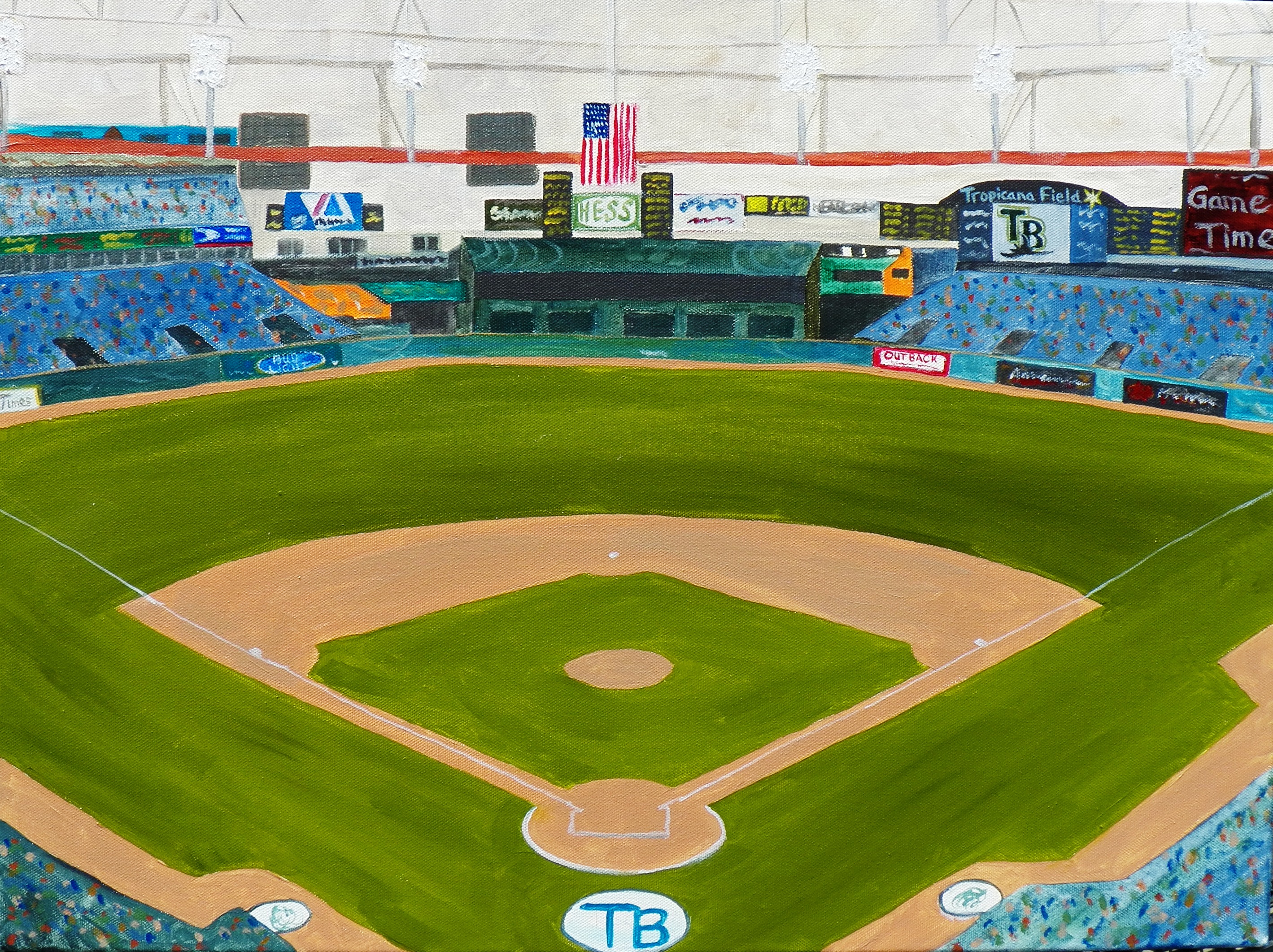 Tropicana Field, home of the Tampa Bay Rays, is the 16th ball park in the series of 30.  More than half way now.  Woo Hoo!  This field is another of the domed fields.  I don’t find them as interesting to paint as the open air fields.