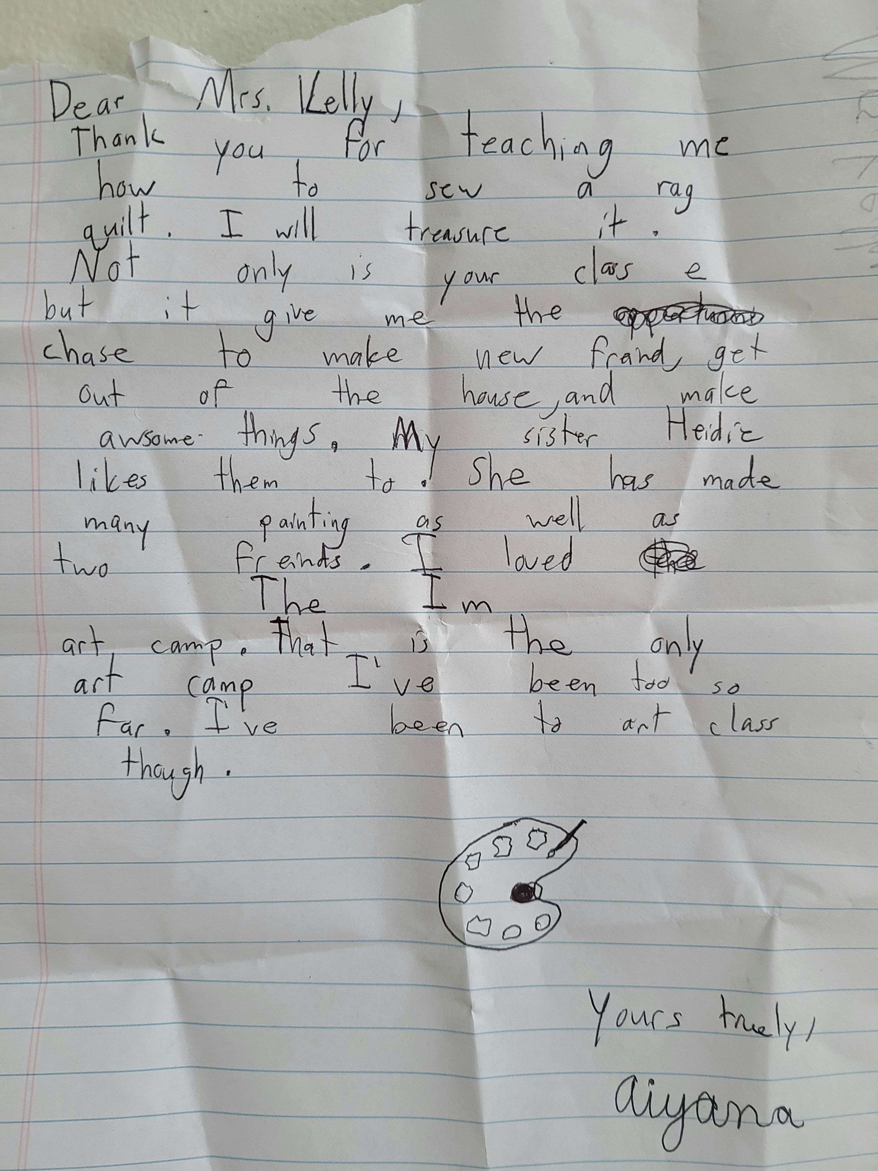 This was in my mailbox when I got to work yesterday morning. I LOVE IT! Thanks Aiyana. You made my day! And I’m so glad you came to sewing camp. You did a great job!!!!