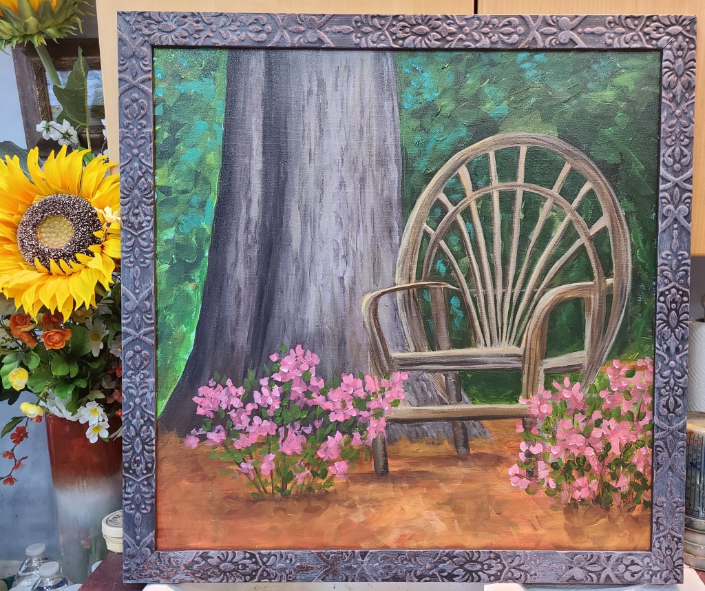 Posted in daily painter, tagged azaleas, chair, trees on December 12, 2020| Leave a Comment »