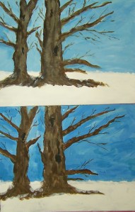 Posted in Art Class, daily painter, tagged acrylic, Art Class, art lessons, daily painting, Landscape, oil painting, snow, trees, Virginia Artist, winter trees on January 14, 2011| 1 Comment »