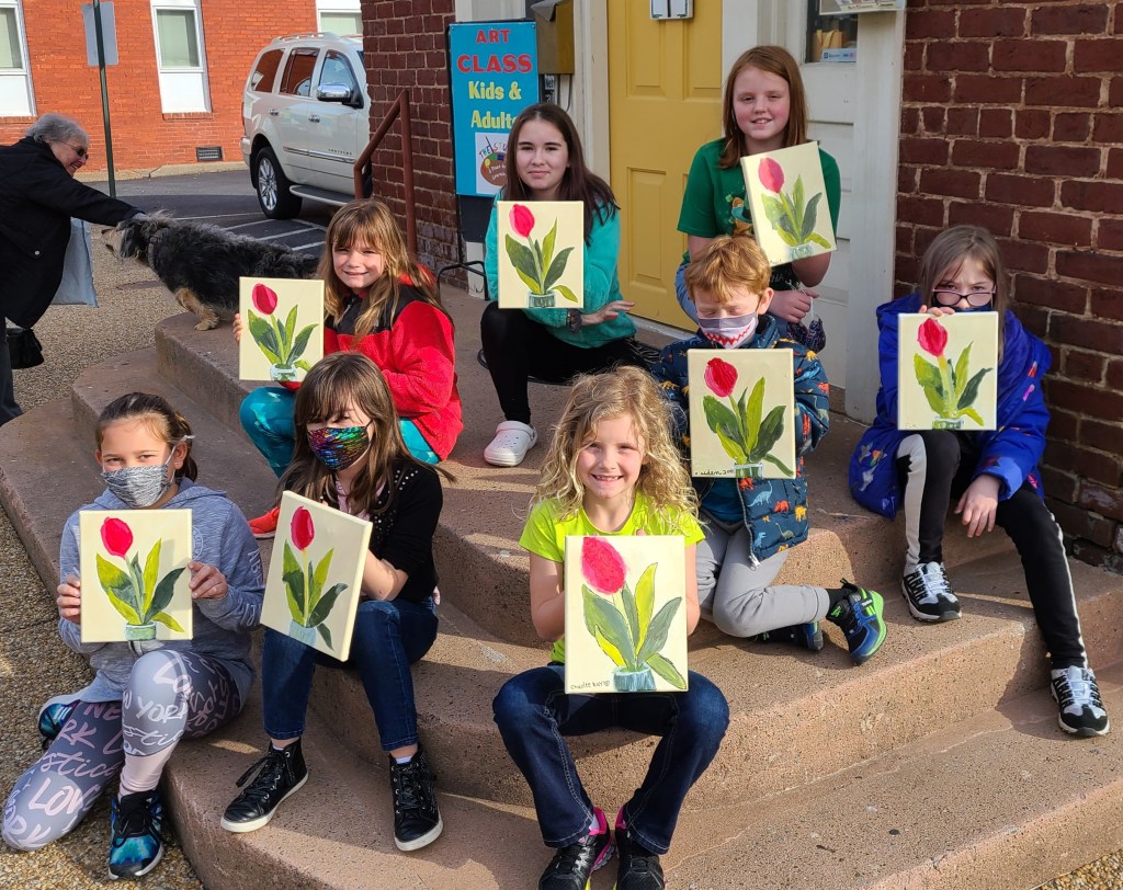 We are all ready for spring flowers…..we love to paint them. So the kids painted a vase of tulips this week at class. What fun! And they turned out great.