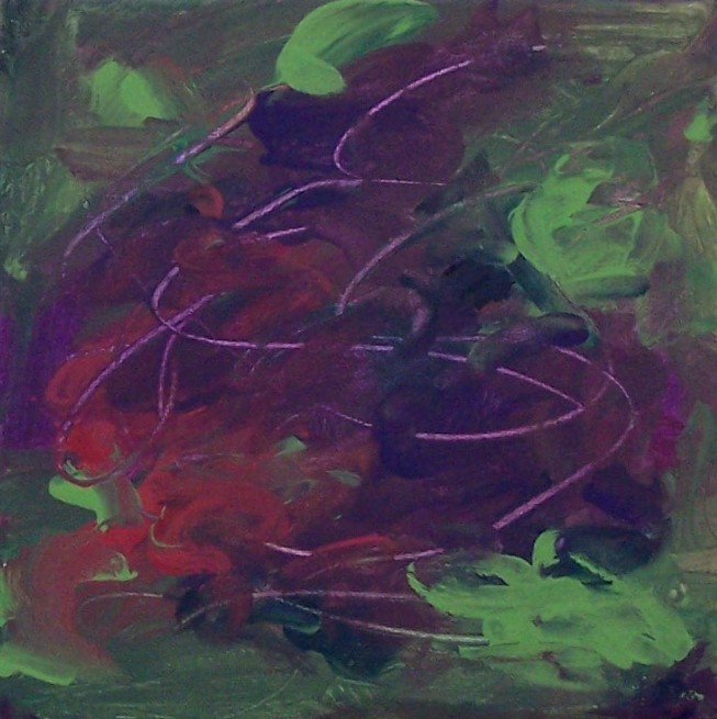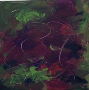 Vineyard VVineyard V is an acrylic abstract on gallery wrap canvas measuring 30″x40″.   The colors of this painting invoke colors of vines and grapes and bottles and wine.  And I really like wine.