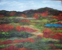 Several years ago Allen and I took his 90-year-old aunt, Honnie, over to West Virginia to visit her other nephew at his mountain house. This is the view from their deck. Honnie called this painting “Scattered Rugs” (oil on canvas, 18″x24″). And she wrote a poem about it. I’ve searched everywhere for where I put the poem and when I find it I’ll post it here for you all to see.