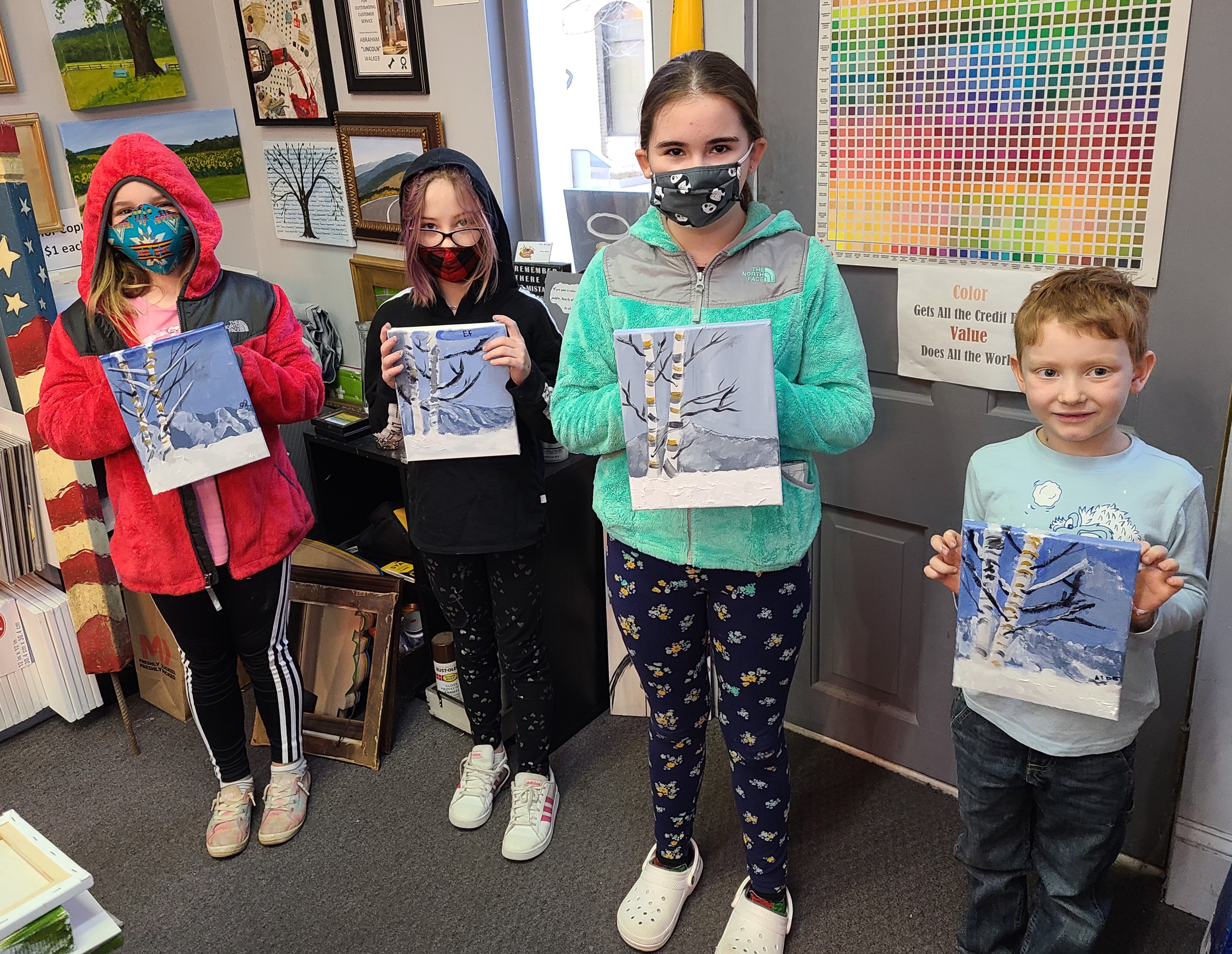 Posted in daily painter, tagged Birch Trees, kids class, winter on January 14, 2021| Leave a Comment »